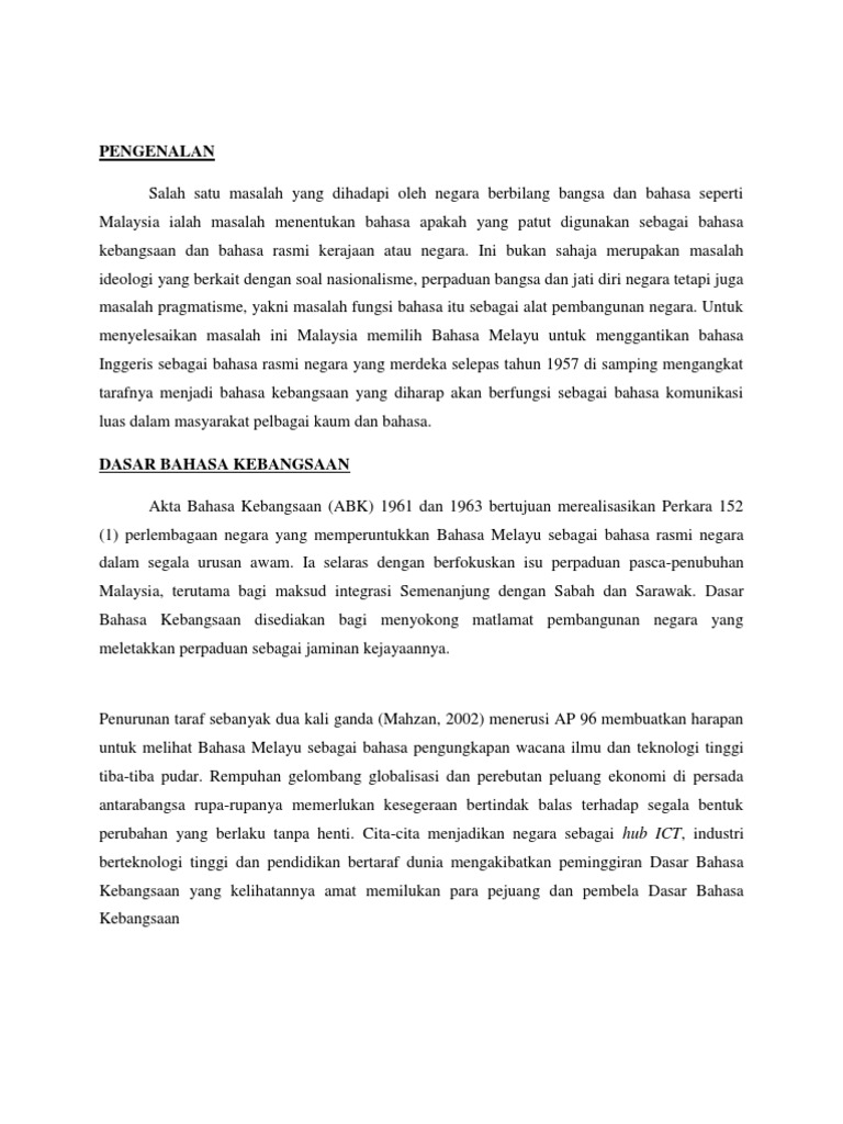 Kepentingan Bahasa Melayu Dalam Sistem Kebangsaan Pdf